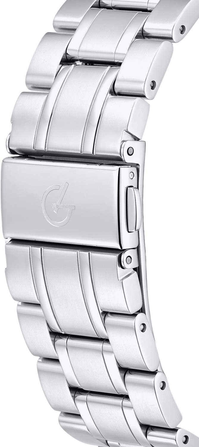 Метки и стрелки с люминесцентным покрытием, которое светится в темноте после непродолжительной зарядки на свету. Окошко даты и дня недели находится в положении 3 часа. Сапфировое стекло. Рифленая заводная головка. Стальной браслет с матовой и полированной отделкой. Раскладывающаяся застежка. Имеется женский вариант модели G3194.1128.