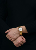 Окошко даты находится в положении 6 часов. Рифленая заводная головка. Стальной браслет с раскладывающейся застежкой.