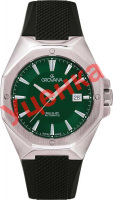 Стрелки и метки с люминесцентным покрытием, которое светится в темноте после непродолжительной зарядки на свету. Окошко даты находится в положении 3 часа. Заводная головка в форме болта с защитой. Удобный каучуковый ремешок.