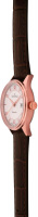 Накладные метки в виде штрихов и арабских цифр. Острые стрелки в стиле Alpha. Окошко даты находится в положении 3 часа. Рифленая заводная головка. Удобный кожаный ремешок.