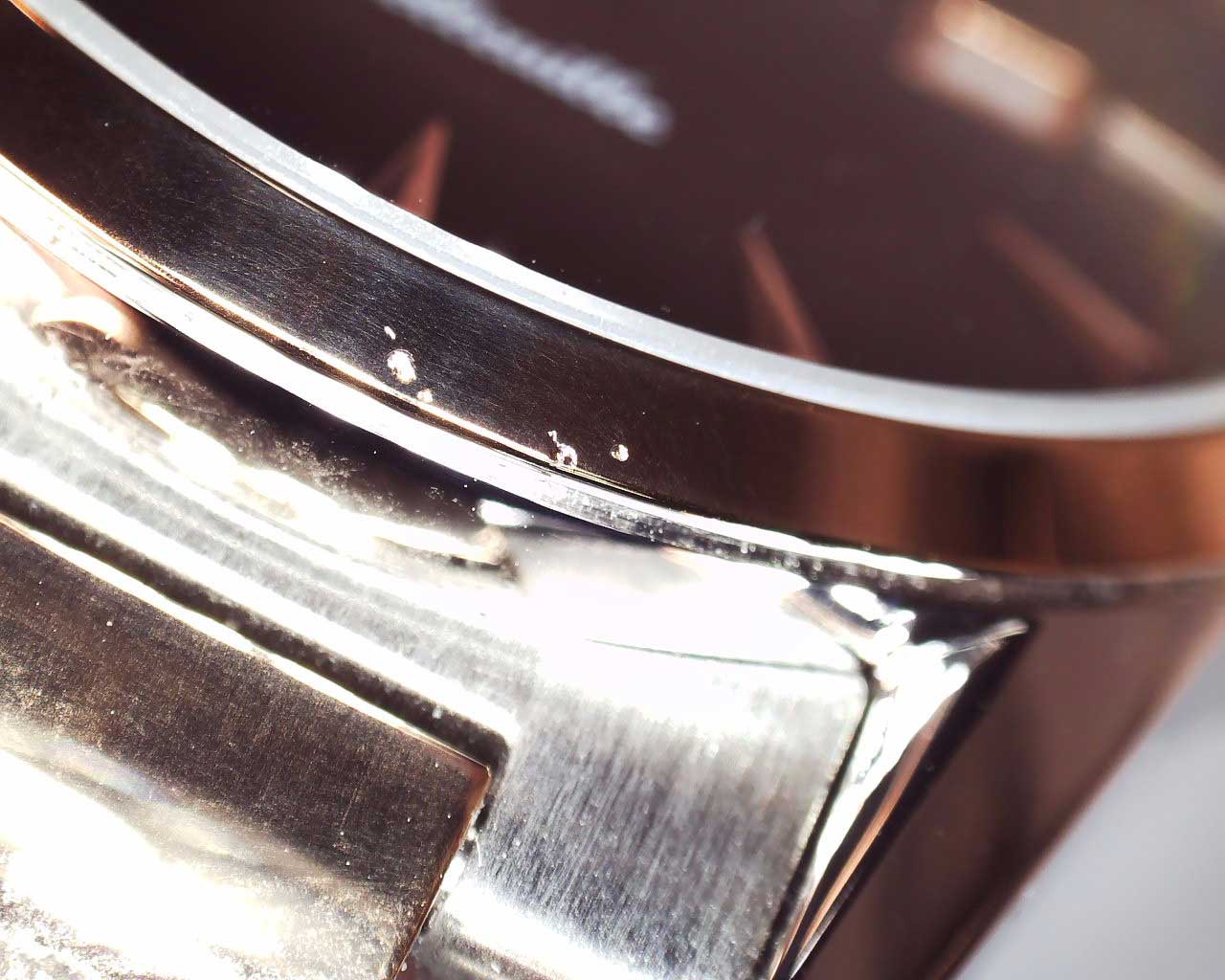 Клиновидные стрелки в стиле Dauphine. Окошко даты находится в положении 3 часа. Сапфировое стекло. Рифленая заводная головка. Стальной браслет с раскладывающейся застежкой.