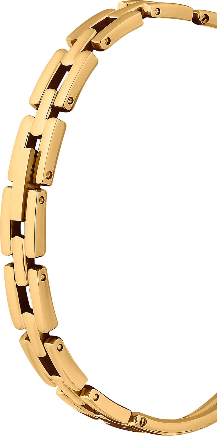 Накладные метки в виде точек, украшенных кристаллами. Заостренные прямоугольные стрелки в стиле Baton. Рифленая заводная головка. Надежный стальной браслет.