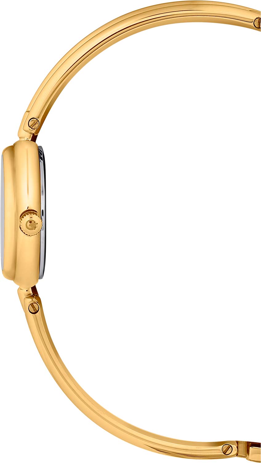 Накладные метки в виде точек, украшенных кристаллами. Заостренные прямоугольные стрелки в стиле Baton. Рифленая заводная головка. Надежный стальной браслет.