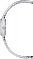 Накладные метки в виде точек, украшенных кристаллами. Заостренные прямоугольные стрелки в стиле Baton. Рифленая заводная головка. Надежный стальной браслет.