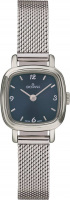 Накладные метки в виде штрихов и арабских цифр. Заостренные прямоугольные стрелки в стиле Baton. Плоская рифленая заводная головка. Браслет миланского плетения.