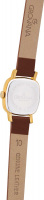 Накладные метки в виде штрихов и арабских цифр. Заостренные прямоугольные стрелки в стиле Baton. Плоская рифленая заводная головка. Удобный кожаный ремешок с классической застежкой.