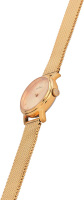 Накладные метки в виде штрихов и арабских цифр. Заостренные прямоугольные стрелки в стиле Baton. Плоская рифленая заводная головка. Браслет миланского плетения.