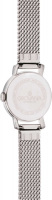 Накладные метки в виде штрихов и арабских цифр. Заостренные прямоугольные стрелки в стиле Baton. Плоская рифленая заводная головка. Браслет миланского плетения.