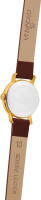 Накладные метки в виде штрихов и арабских цифр. Заостренные прямоугольные стрелки в стиле Baton. Плоская рифленая заводная головка. Удобный кожаный ремешок с классической застежкой.