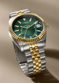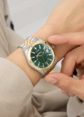 Стрелки и метки с люминесцентным покрытием, которое светится в темноте. Рифленая заводная головка. Браслет с раскладывающейся застежкой.