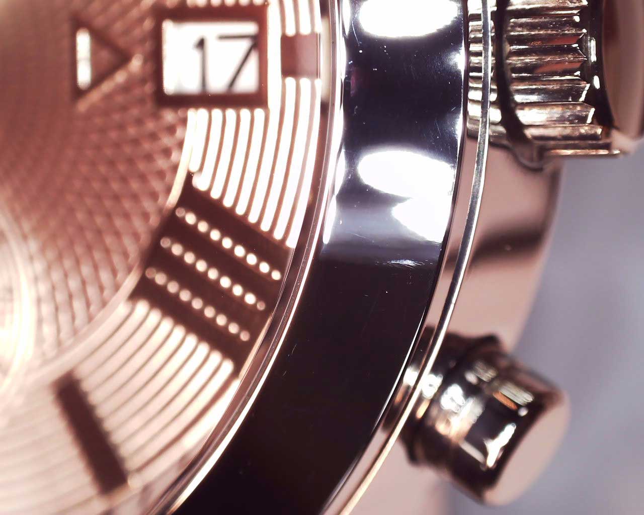 Мужские часы-хронограф с секундомером Atlas. Круглый стальной корпус. Метки в виде римских цифр и штрихов. Окошко даты в положении 3 часа. Рифленая заводная головка. Браслет с раскладывающейся застежкой.