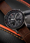 Круглый стальной корпус. Вращающийся безель с логарифмической линейкой. Циферблат выполнен по технологии Sunray (солнечные лучи). Метки в виде штрихов. Окошко даты и дня недели находится в положении 3 часа.