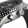 Завинчивающаяся рифленая заводная головка. Завинчивающаяся прозрачная задняя крышка. Кожаный ремешок с классической застежкой.