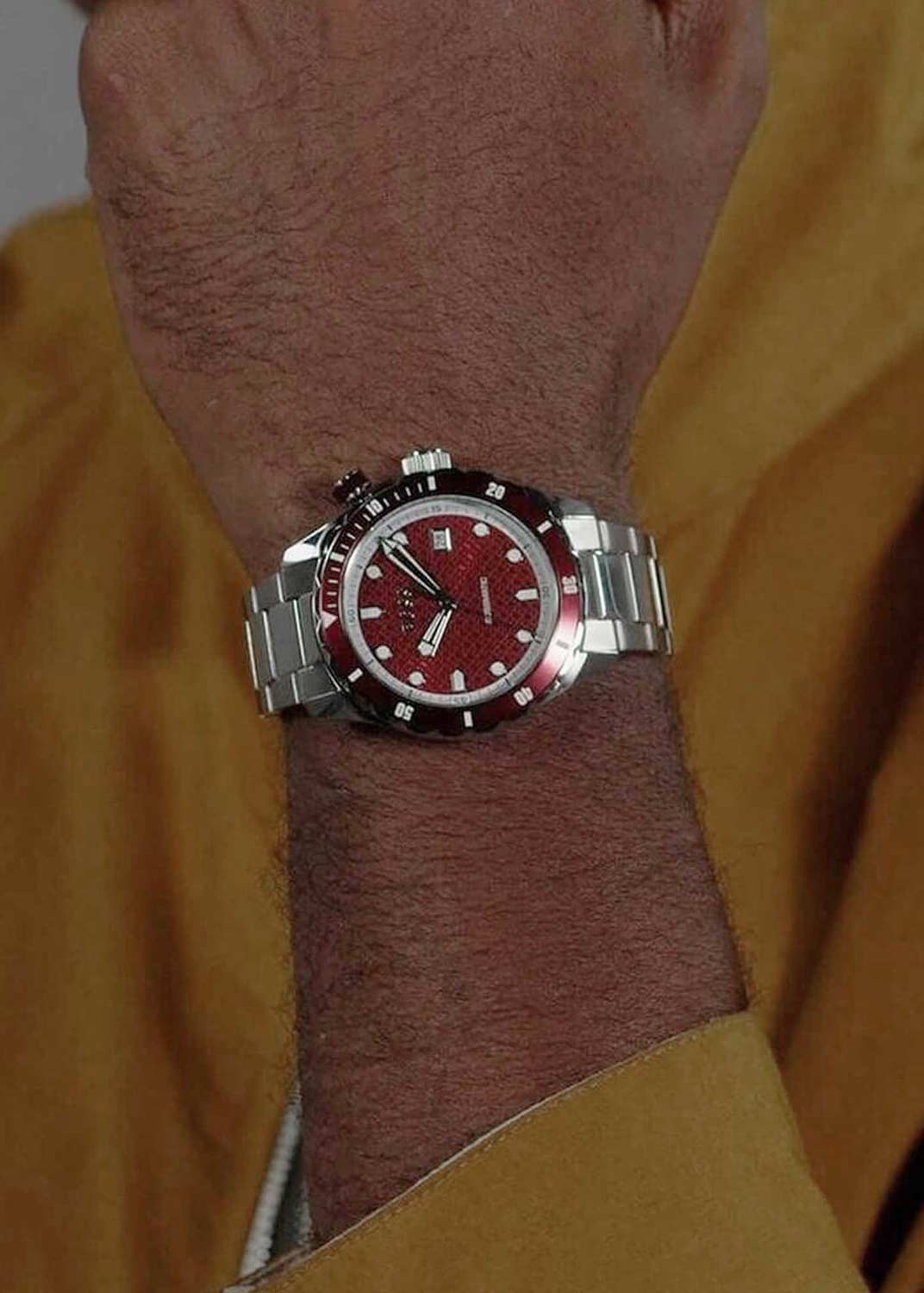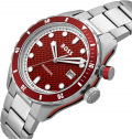 Окошко даты находится в положении 3 часа. Рифленая заводная головка. Завинчивающаяся прозрачная задняя крышка. Браслет с раскладывающейся застежкой.