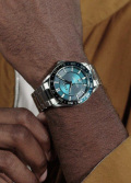 Метки и стрелки с люминесцентным покрытием, которое светится в темноте после непродолжительной зарядки на свету. Окошко даты находится в положении 6 часов. Рифленая заводная головка с защитой. Надежный стальной браслет с раскладывающейся застежкой.