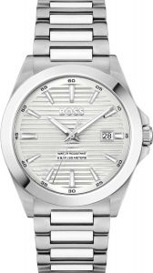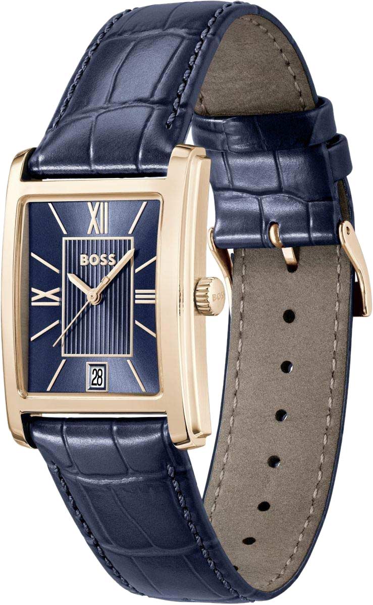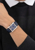 Заостренные прямоугольные стрелки в стиле Baton. Окошко даты находится в положении 6 часов. Рифленая заводная головка. Кожаный ремешок с классической застежкой.