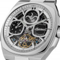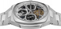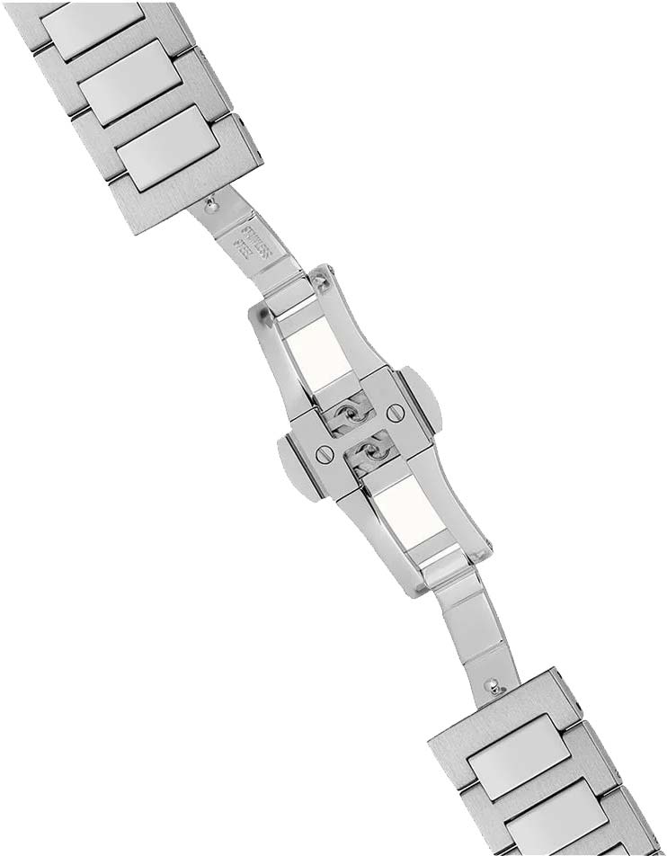 Завинчивающаяся прозрачная задняя крышка. Часовой механизм декорирован «женевскими волнами» (Cotes de Geneve). Кожаный ремешок с классической застежкой.