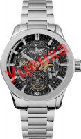 Скелетонизированные часы. В механизме 21 камень. Круглый стальной корпус. Метки в виде штрихов. Рифленая заводная головка. Завинчивающаяся прозрачная задняя крышка. Стальной браслет с раскладывающейся застежкой.