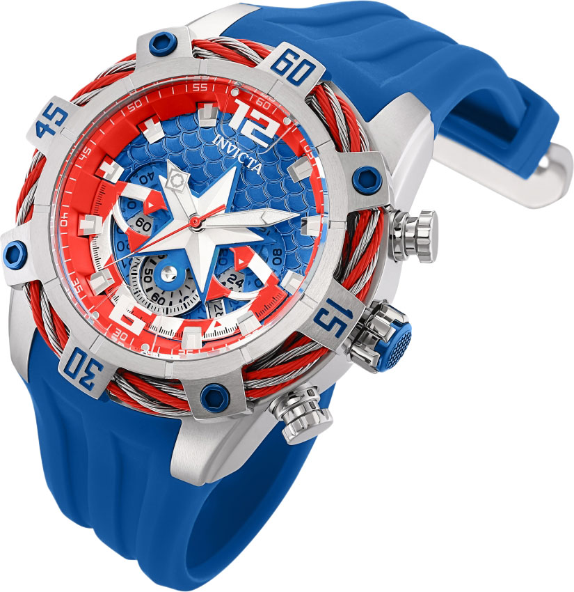 Часы для настоящих супергероев, которые не представляют свою жизнь без приключений! Marvel Captain America. Лимитированная серия - 4000 экземпляров. Вдохновением для создания модели послужил супергерой Captain America (Капитан Америка), который впервые появился в комиксах в 1940-х годах. Часы-хронограф