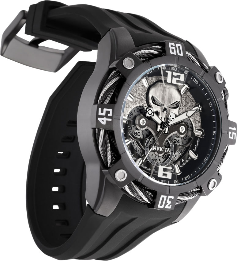 Уникальные часы для поклонников комиксов подтолкнут вас на поиски новых открытий и приключений! Marvel Punisher. Лимитированная серия - 4000 экземпляров. Вдохновением для создания модели послужил антигерой Punisher (Каратель), который впервые появился в комиксе The Amazing Spider-Man в феврале 1974 года. Часы-хронограф