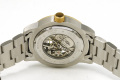 Круглый корпус с гладкими и сатинированными поверхностями. Полуоткрытый циферблат позволяет любоваться работой механизма. Клиновидные стрелки в стиле Dauphine с белым люминесцентным