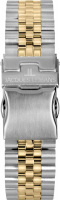 Метки и стрелки с люминесцентным покрытием, которое светится в темноте после непродолжительной зарядки на свету. Окошко даты, выделенное полированной рамкой, находится в положении 6 часов. Рифленая заводная головка с защитой. Надежный стальной браслет с матовой и полированной отделкой. Раскладывающаяся застежка.