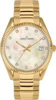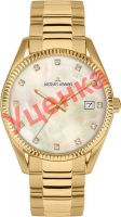 Derby. Женские наручные часы, выпущенные в честь 50-летия компании Jacques Lemans. Круглый стальной корпус. Рифленый полированный безель. Перламутровый циферблат с метками в виде точек, инкрустированных кристаллами Swarovski, украшен фирменным логотипом Jacques Lemans. Окошко даты находится в положении 3 часа. Рифленая заводная головка. Стальной браслет с раскладывающейся застежкой.