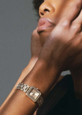 Рифленая заводная головка украшена кристаллом. Надежный стальной браслет украшен россыпью кристаллов. Стальная задняя крышка крепится на 4-х винтах. Браслет с раскладывающейся застежкой.