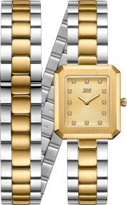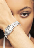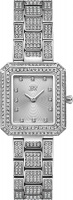 Рифленая заводная головка украшена кристаллом. Надежный стальной браслет украшен россыпью кристаллов. Стальная задняя крышка крепится на 4-х винтах. Браслет с раскладывающейся застежкой.