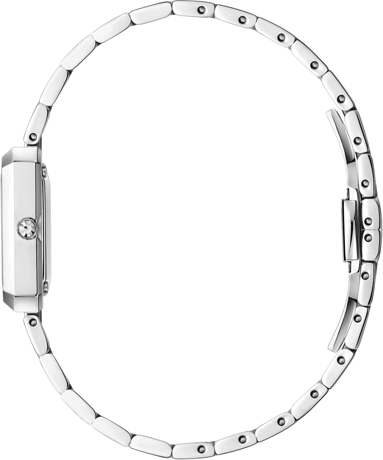 Рифленая заводная головка украшена кристаллом. Стальная задняя крышка крепится на 4-х винтах. Надежный стальной браслет с раскладывающейся застежкой.