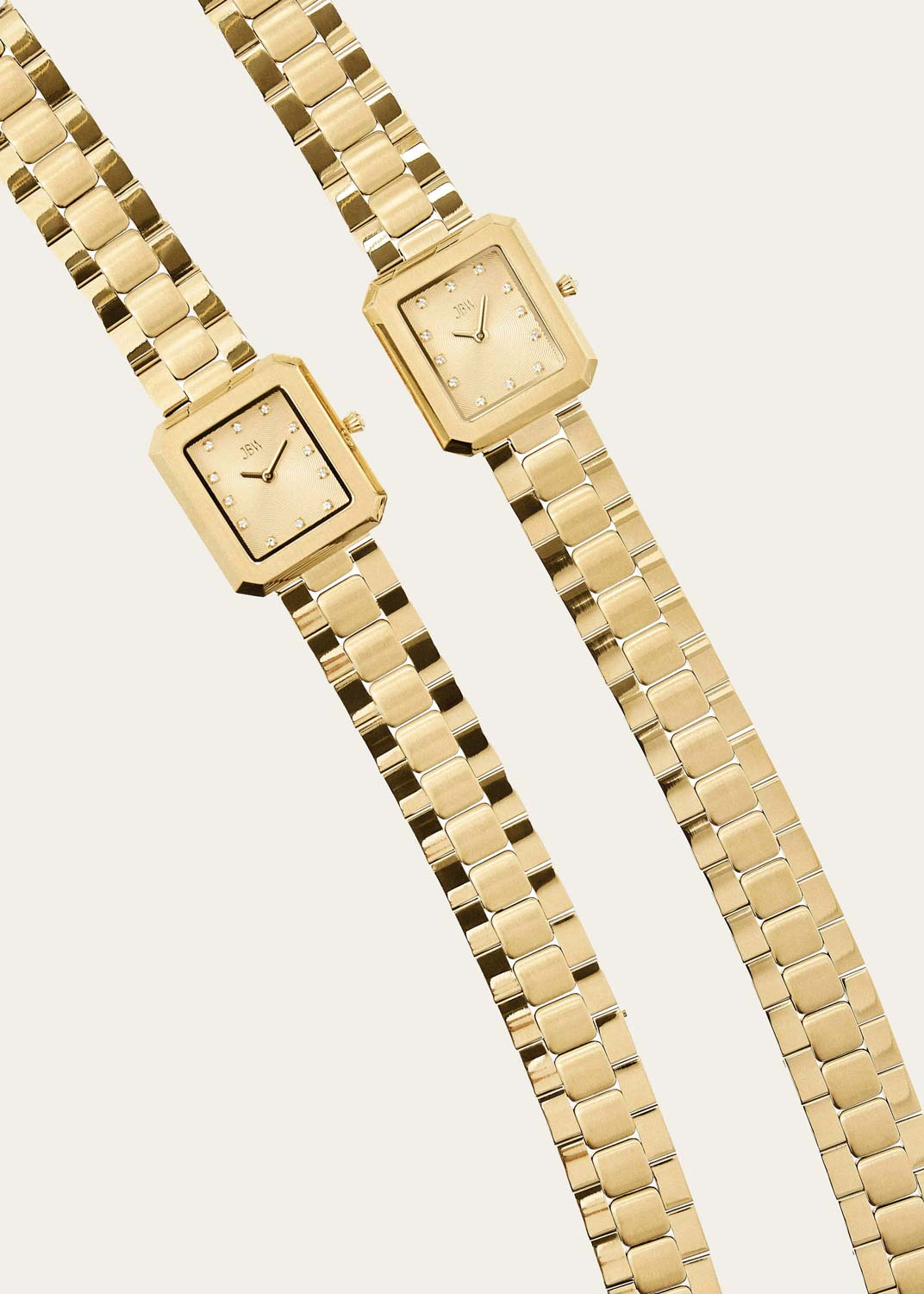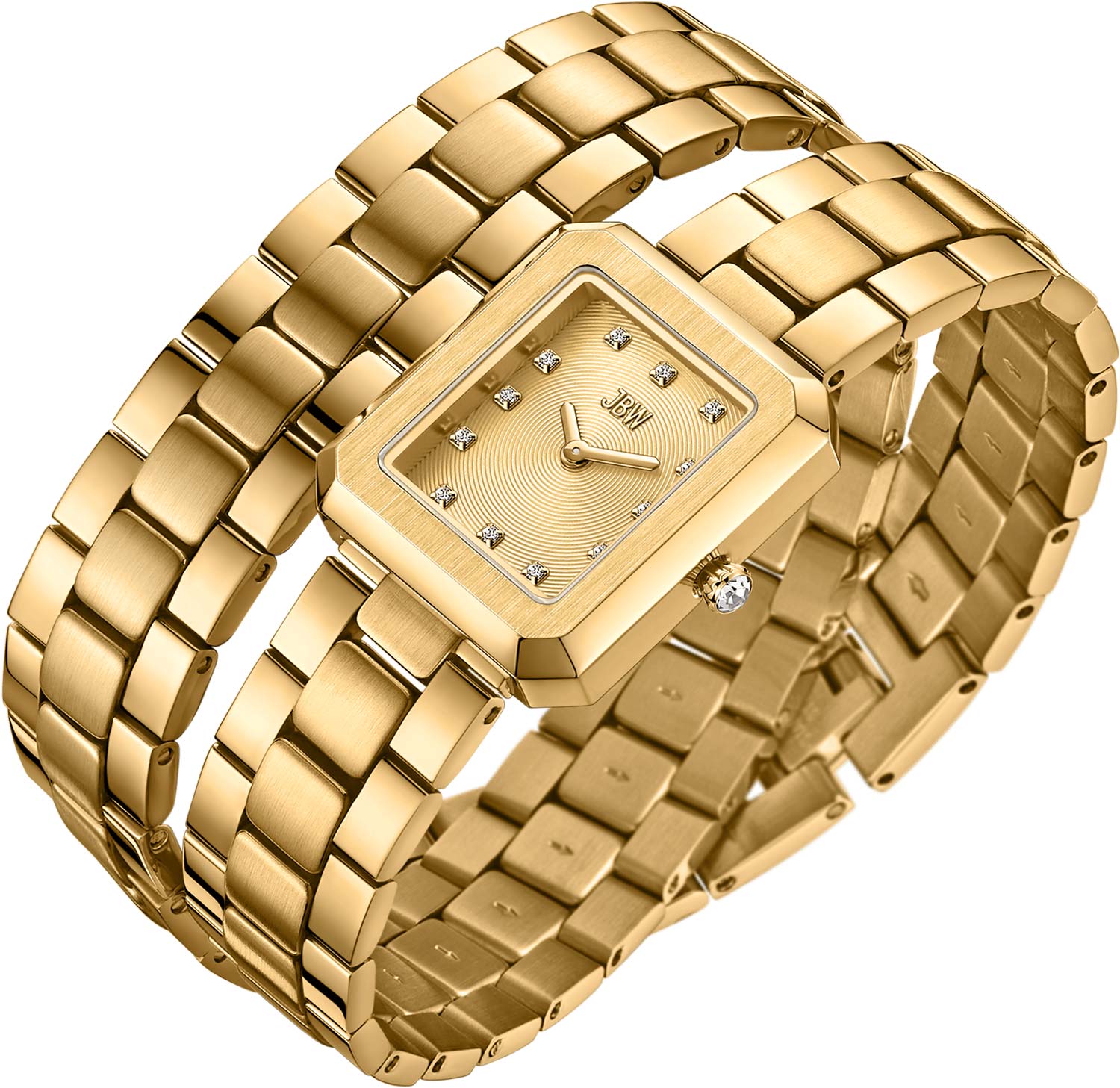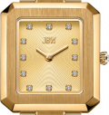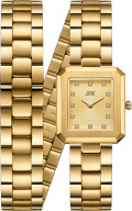 Рифленая заводная головка украшена кристаллом. Стальная задняя крышка крепится на 4-х винтах. Удлиненный стальной браслет с раскладывающейся застежкой.