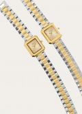 Рифленая заводная головка украшена кристаллом. Стальная задняя крышка крепится на 4-х винтах. Удлиненный стальной браслет с раскладывающейся застежкой.