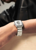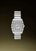 Циферблат без меток украшен фирменным логотипом. Мечевидные стрелки в стиле Sword. Граненая заводная головка, украшенная кристаллами. Стальная задняя крышка крепится на 4-х винтах. Стальной браслет с раскладывающейся застежкой.