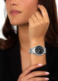 Метки и стрелки с люминесцентным покрытием, которое светится в темноте после непродолжительной зарядки на свету. Окошко даты находится в положении 3 часа. Рифленая заводная головка с защитой. Браслет с раскладывающейся застежкой.