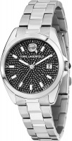 Метки и стрелки с люминесцентным покрытием, которое светится в темноте после непродолжительной зарядки на свету. Окошко даты находится в положении 3 часа. Рифленая заводная головка с защитой. Браслет с раскладывающейся застежкой.