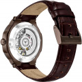 Рифленая заводная головка с защитой. Завинчивающаяся прозрачная задняя крышка. Кожаный ремешок с классической застежкой.