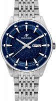 Сдвоенное окошко даты и дня недели находится в положении 3 часа, (текущий день недели может демонстрироваться на двух языках, русском и английском). Циферблат защищен двусторонним выпуклым сапфировым стеклом.