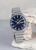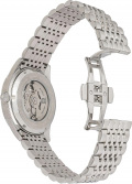 Рифленая заводная головка украшена фирменным логотипом. Завинчивающаяся прозрачная задняя крышка с индивидуальным номером. Стальной браслет с раскладывающейся застежкой.