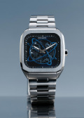 Заводная головка в форме гайки украшена фирменным логотипом. Прозрачная задняя крышка с индивидуальным номером крепится на 4 винтах. Стальной браслет с раскладывающейся застежкой.