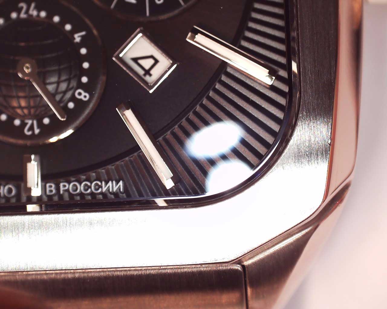 Коллекция Марсоход II названа в честь аппарата, исследующего поверхность Красной планеты. В 70-х годах страна осуществила два запуска аналогичных устройств. Этот проект, символизирующий брутальность и мастерство, объединяет советские традиции с современными технологиями и стилем ретро. Лимитированная серия — 50 экземпляров. Мужские наручные часы. В механизме 26 камней. 12-ти и 24-х часовой формат времени. Корпус из нержавеющей стали с зеркальной полировкой и сатинированием. Гильошированный в зоне меток циферблат в центре выполнен по технологии Sunray (солнечные лучи). Метки в виде штрихов. Время в 24-х часовом формате, день недели и месяц вынесены на отдельные циферблаты. Окошко даты находится между часовыми метками 4 и 5. Заводная головка в форме гайки украшена фирменным логотипом. Прозрачная задняя крышка с индивидуальным номером украшена изображением космонавта и крепится на 4 винтах. Стальной браслет с застежкой-бабочкой.