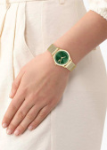 Заостренные прямоугольные стрелки в стиле Baton. Секундная стрелка в виде фирменной буквы логотипа ''L''. Рифленая заводная головка с логотипом. Удобный и надежный стальной браслет миланского плетения.