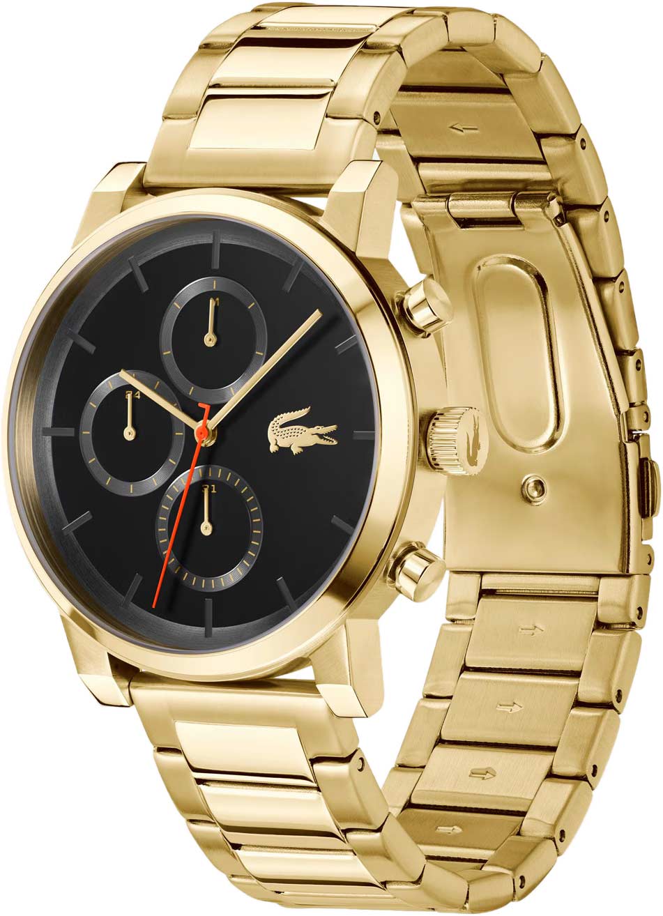 Время в 24-х часовом формате, дата и день недели отображаются на отдельных циферблатах. Рифленая заводная головка с логотипом. Удобный и надежный стальной браслет с раскладывающейся застежкой.