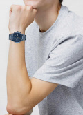 Время в 24-х часовом формате, дата и день недели отображаются на отдельных циферблатах. Рифленая заводная головка с логотипом. Удобный и надежный стальной браслет с раскладывающейся застежкой.