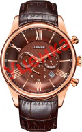 Часы-хронограф с секундомером. 12-ти и 24-х часовой формат времени. Циферблат защищен прочным сапфировым стеклом. Метки в виде штрихов и римских цифр. Окошко даты находится между отметками 4 и 5 часов. Рифленая заводная головка. Ремешок с раскладывающейся застежкой.