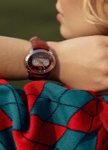 Кварцевые наручные часы. Овальный стальной корпус напоминает изгибы велотрека. Циферблат со скошенными гранями, воссоздающими узнаваемый силуэт переполненных трибун, защищен прочным сапфировым стеклом. Центральная вставка из натурального дерева как отсылка к деревянному покрытию олимпийских спортивных объектов.