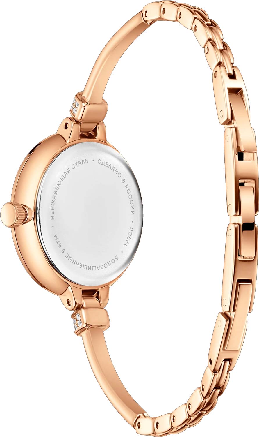 - Циферблат, корпус и браслет украшены кристаллами