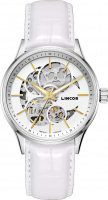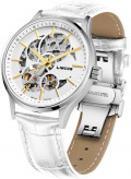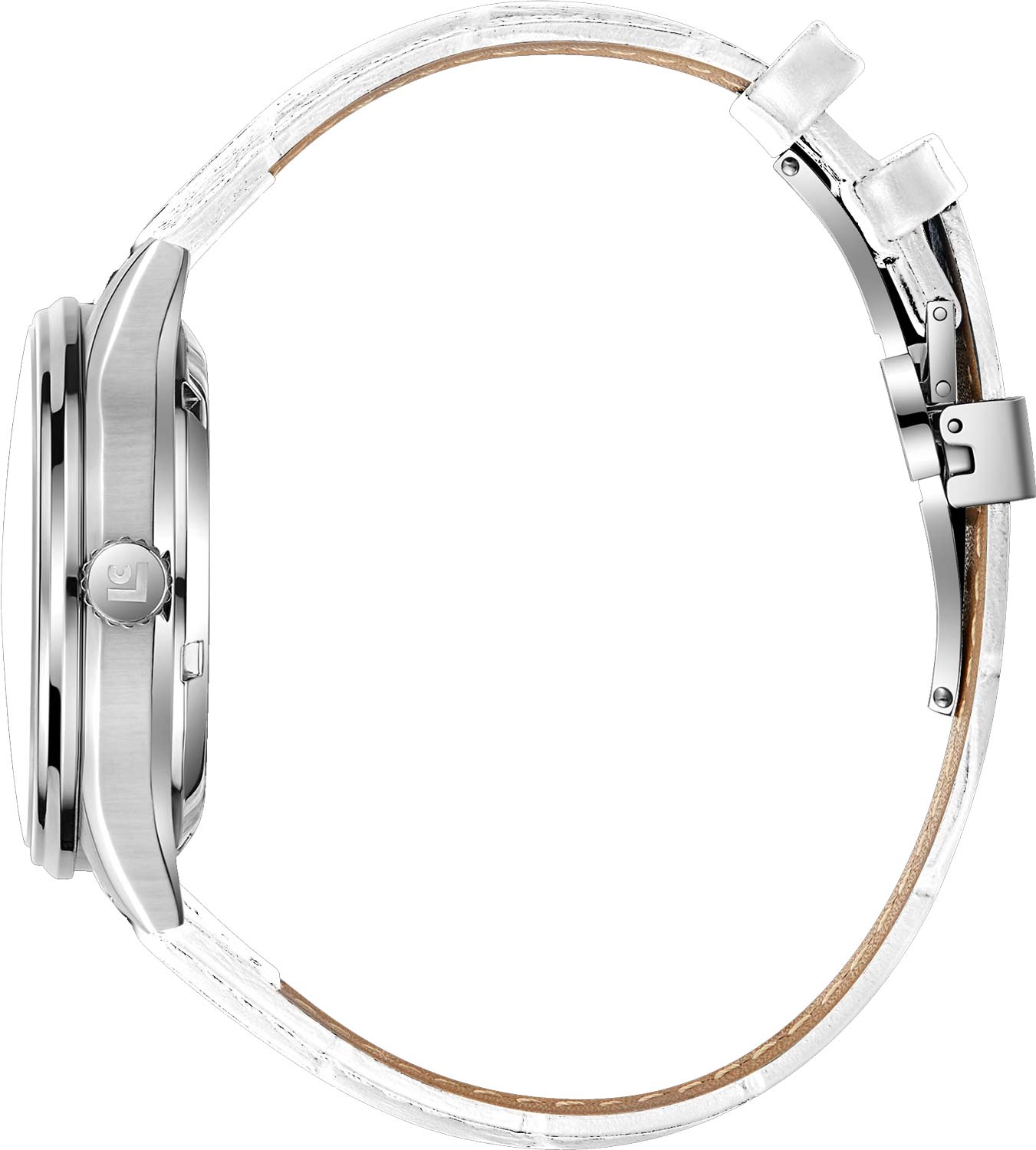 Циферблат с накладными метками в виде штрихов защищен прочным сапфировым стеклом. Рифленая заводная головка. Прозрачная задняя крышка. Удобный кожаный ремешок из натуральной кожи с раскладывающейся застежкой.