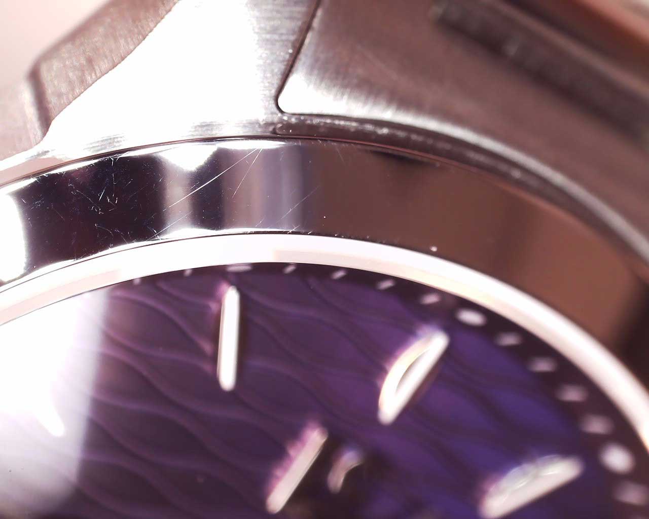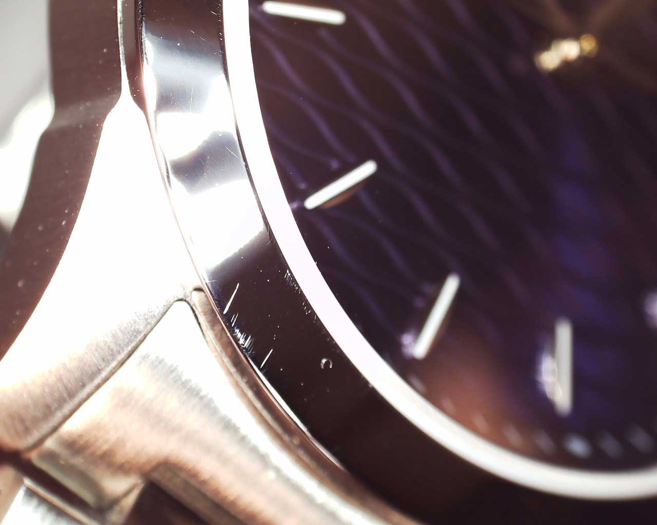 Окошко даты находится в положении 3 часа. Рифленая заводная головка. Завинчивающаяся задняя крышка. Браслет с раскладывающейся застежкой.