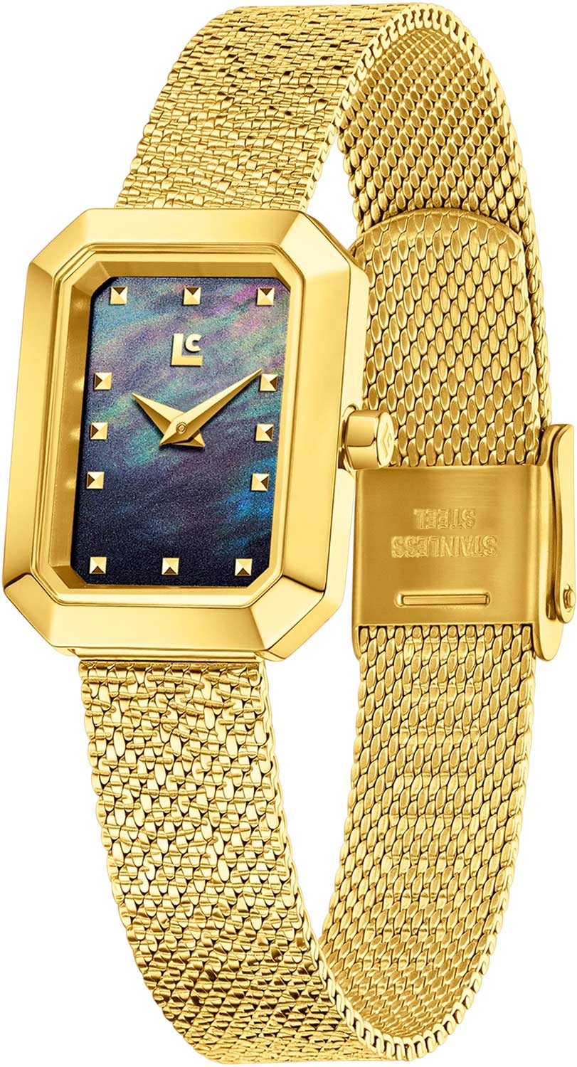 Шестигранная заводная головка. Стальной браслет миланского плетения с возможностью регулировки длины.