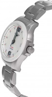 Женские наручные часы. Круглый стальной корпус. Функция индикации заряда (EOL). Перламутровый циферблат защищен прочным сапфировым стеклом. Метки в виде точек с бриллиантами и арабских цифр 6 и 12.